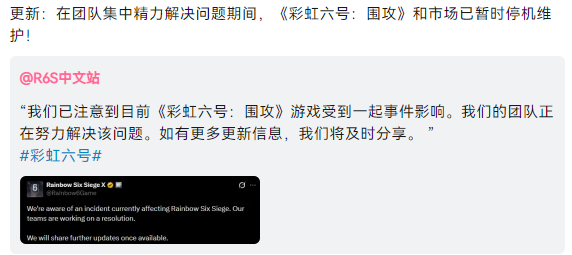育碧官方在当天便立马发布公告表示游戏服务器被入侵,并且游戏也在第一时间关闭了服务器和游戏市场,防止事态进一步扩大。