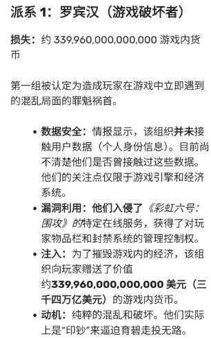 第一位,就是入侵《彩虹六号》的黑客团体,他们通过获得游戏服务器的控制权,发放了超过339960000000000美元的道具(成都也没这么多零啊),这种纯粹的混乱,让育碧的服务器差点完蛋了;