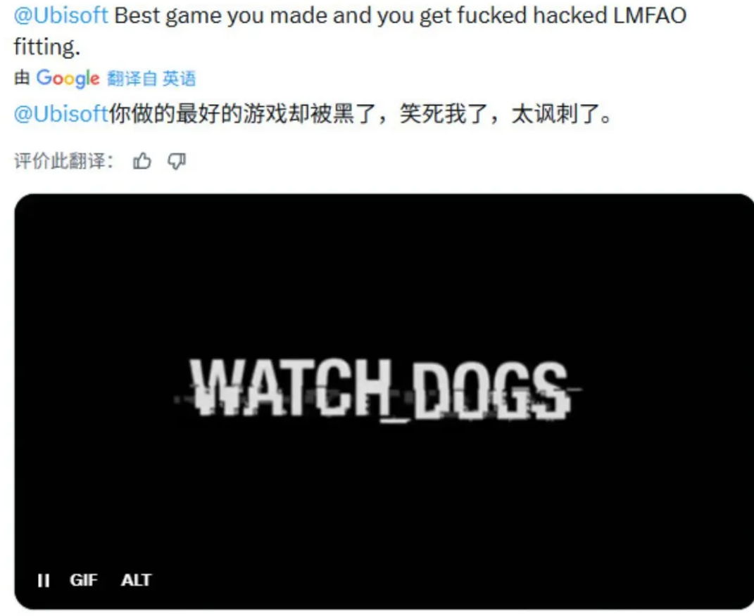 玩家们乐了,虽然他们也清楚这肯定是黑客做的,可他们就是恨不起来这个不法分子,有的反倒还骂育碧活该。